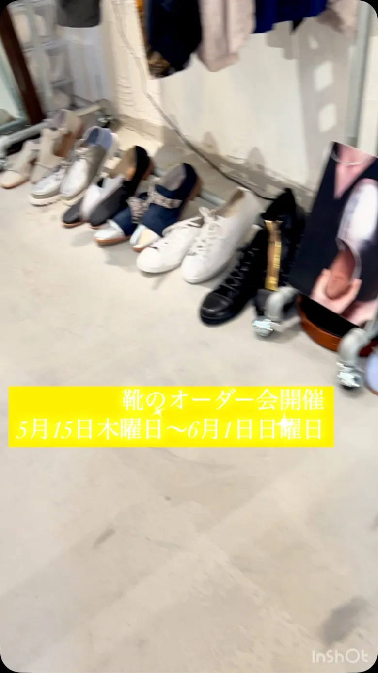 5月15日木曜日~6月1日日曜日の期間で靴のオーダー会を開催します。本革を約60種類以上の革から選んで、ソールも色や、形を選び、ヒモや金具までご自分の好みの色に選んでいただける期間限定のイベントで…