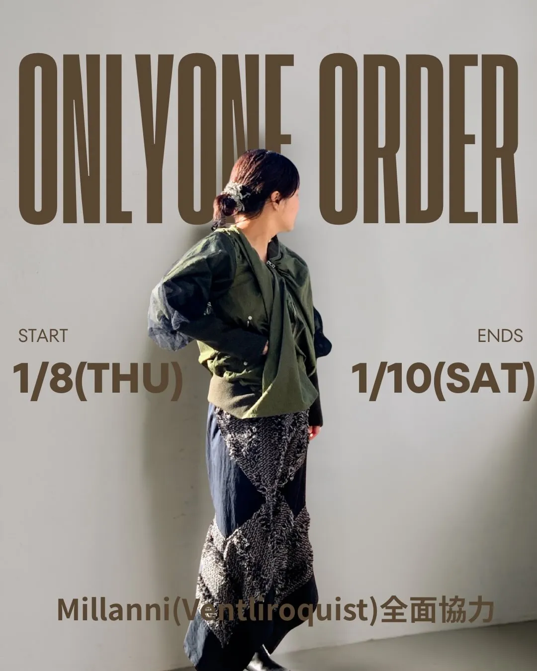 一点モノオーダー会millanni(ventriloquist)全面協力のもと開催中のオーダー会・デザイン選べて・生地が選べて・色が選べて・ボタンとかも選べるなかなかない企画です。そして楽しめる企画1/8〜1/1011:00…